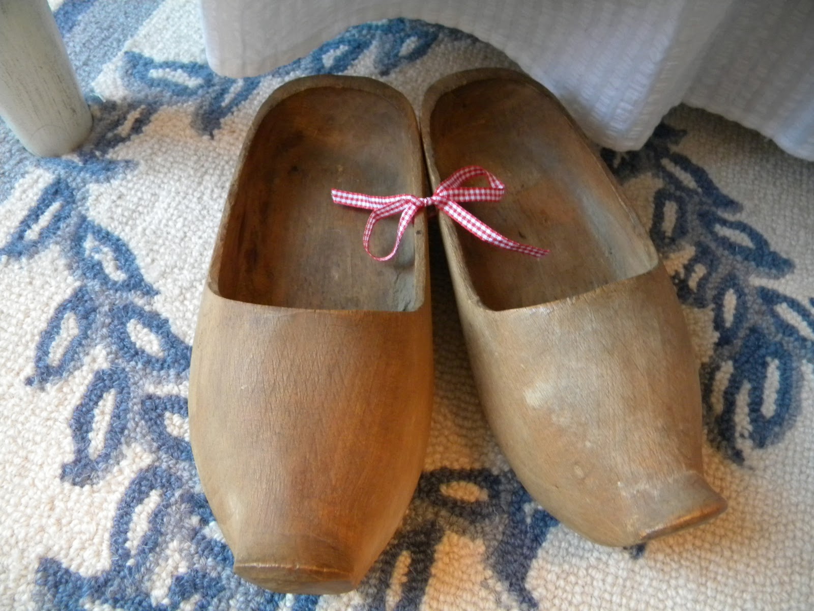 More ribbon is added to these wooden clogs.